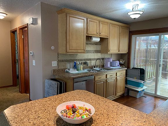 Check out this ranch style, 1,560 sq. ft., 4 bed, 2 bath, 2 car oversized garage home located in Rapid Valley. The main level has living/dining room area with a large bay window providing an abundance of natural light. It also has solid wood doors, 2 bedrooms, a shared bathroom, kitchen with breakfast bar, tiled backsplash, appliances included (electric stove, refrigerator, mounted microwave, dishwasher), and patio sliding glass door to the 12x10 deck/fenced backyard. The basement has a spacious family room, shared bathroom (remodeled walls, floors, and sink/vanity), 2 bedrooms (one not to code and the other is partially finished. The 26x26 detached garage has a huge of possibilities. Updates include a new roof and AC unit in 2019, new water heater in 2021, and new furnace in 2023. Nestled on a corner lot the owners loved the neighbors and proximity to Ellsworth AFB & downtown Rapid City. Did we mention the fenced yard? The home is being sold AS IS.