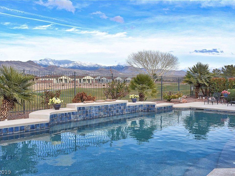 Gorgeous Mountain Falls home offers tasteful upgrades, in-ground pool, & stunning golf course and mountain views! Great room boasts fireplace, custom built-ins, bar w/wine fridge, shutters, & opens to large kitchen. Oversized island, stainless appliances, double ovens, dining area, pantry, & granite tops in kitchen! Master suite offers fireplace, French doors to patio/pool, 2 walk-in closets, & 5-piece bath. Pool is solar heated & saltwater!