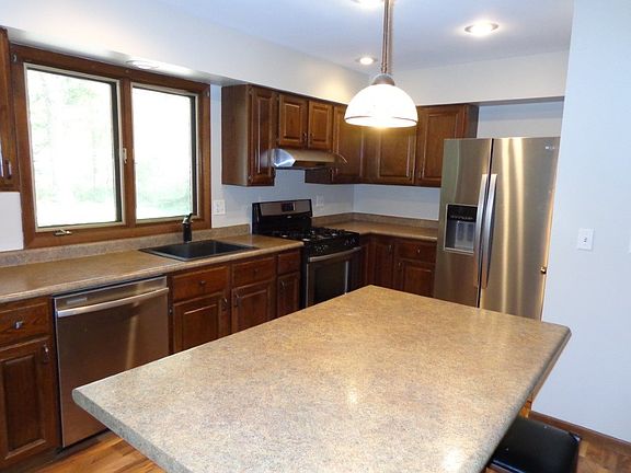 Fantastic 3 Bedroom, 2 1/2 Bath Raised Ranch. Quartz counter tops in full bath. Stainless steel appliances in the kitchen. Wood burning fireplace in family room. Den in lower level with a closet for storage. 3 Season porch and deck. Extra garage with concrete drive. Low maintenance exterior. Seamless gutters. Separate well for underground sprinklers. Quiet Street. Universal Home Warranty.