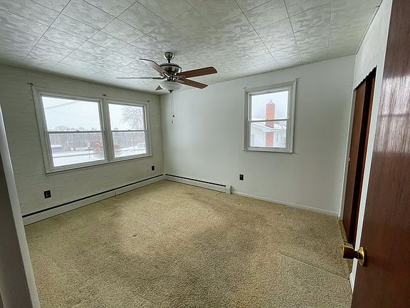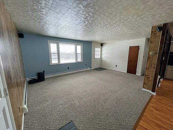 Charming 3 bedroom 1 bath ranch with an attached 2 car garage that's situated on almost a half acre of land just outside of town in a private setting. New kitchen remodel with a butcher block breakfast nook and updated countertops and applicances. Bathroom just had brand new flooring laid down as well! Step inside the front door to this ranch style home to a large open floor plan living room, dining room, and kitchen. There's an extra bonus room off the kitchen boasting another 224 sq ft of living space! Basement has endless possibilities, you could finish and double your sq footage. Make your move today!