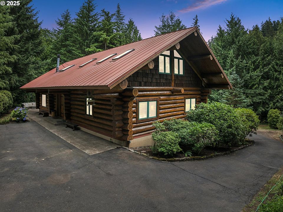 Looking for a private oasis less than two miles from NW 23rd? Discover this one-of-a-kind urban retreat! This stunning log home sits high above the road on over eight acres of wooded seclusion, offering the perfect blend of privacy and convenience. Nestled next to Forest Park and surrounded by old-growth trees, the property includes its own network of self-contained hiking trails and a level yard—perfect for relaxing, playing, or entertaining.This rare find is full of authentic Northwest charm. Inside, a Kachelofen wood-burning fireplace provides efficient, cozy heat, complemented by a traditional furnace system for year-round comfort. Additional features include a two-car garage, a powered detached shop, two extra sheds, a serene pond, a gated driveway, and more. [Home Energy Score = 3. HES Report at https://rpt.greenbuildingregistry.com/hes/OR10239201]