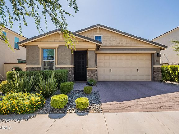 This one is it! Located in Eastmark! This master planned community offers tons of amenities. The home sits within a gated section of the community with its own park adjacent to the home. On your approach you will appreciate the curb appeal of the home as well as the updated front door and security door. Upon entry, you will see the upgrades continue throughout with the stunning chef's kitchen being the star of the show. You will fall in love with the upgraded cabinets, gorgeous granite counter tops with large island, walk in pantry, stainless steel appliances and gas range. Throughout the home you will appreciate the current color tones, upgraded lighting and wood-like tile flooring. The home boasts 3 bedrooms, with a spacious master with ensuite bath, and large closet. There is also a bonus room that makes the perfect office or theater space. The backyard is a perfect with covered patio, paver walkway, green grass and hot tub. Perfect for relaxing! Come see this one today!