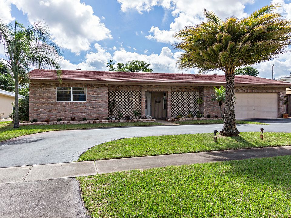 Beautiful 3 Bed, 2 Bath, 2 Car Garage Single Family Home with Pool on a Large Fenced Lot. Beautiful Open Custom Kitchen with Wood Cabinets, Granite Countertops, Stainless Steel Appliances and Breakfast Bar. Kitchen Window Overlooks Screened Pool and Patio Area, Large Open Floor Plan with Living, Dining, and Family Rooms. Large Master Suite Features New Bathroom w/Double Sinks, Frameless Shower Enclosure. Updated Hall Bath with Granite Countertop, New Tile Throughout Home, Newer Plumbing, Newer A/C, Newer Hot Water Heater, Newer Washer/ Dryer, Upgraded Electric Panel, New Pool Pump, Flat Tile Roof, Fenced Back Yard with Plenty Of Space Beyond The Screen Pool For Entertaining. Hurricane Shutters. Large Circular Drive Way, Side Parking, Must See!