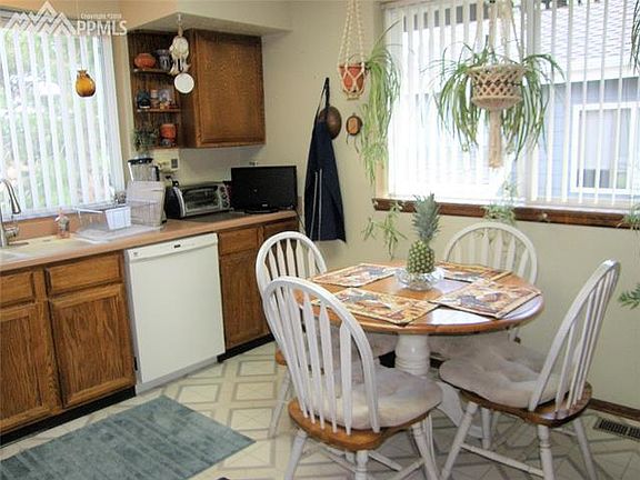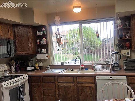 Located atop desirable Old Farm neighborhood offering spectacular city views to include Pikes Peak, Spanish Peaks and the entire front range! Backs to open land and the "Old Farm" community center/neighborhood park with walking distance to numerous trails: Homestead Ridge Trail and High Chaparral open space. Original owner has taken great care of this home. All kitchen appliances stay. There is an abundance of cabinet space with an additional eating area as well as a separate dining room. Tons of natural light in the living room, a wood burning fireplace, more of those fabulous views and a walkout to the trex deck. Additional bedroom and bathroom complete the main level. Master bedroom with Pikes Peak/mountain views, vaulted ceiling, updated 5 pc bathroom with soaking tub and large walk in closet. Upstairs loft area has a closet and can used as a third bedroom (non-conforming). Additional 3/4 bath with adjoining laundry area are located upstairs. Room to expand in the 1000 sq ft basement which is plumbed for another bathroom. Numerous fruit trees and perennials. New exterior paint, gutters, furnace, hot water heater and carpet as of 2015. Underground invisible fencing is included and equipment box located in garage is negotiable. Conveniently located to the Powers Corridor, Academy Blvd, shopping, restaurants and military bases.
