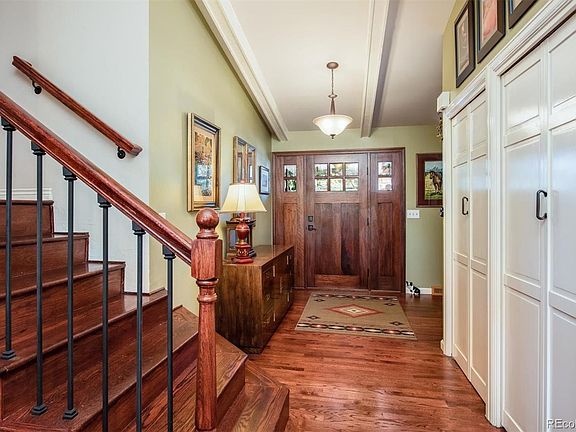 Pride of ownership abounds in this Rainbow Ridge beauty! Your pickiest Buyers will love this immaculate and warm multi-story Craftsman style home in one of Arvada's most loved neighborhoods + walking distance to light rail! Winding streets, large mature trees, private neighborhood pool & tennis courts w/ fantastic access! Eye-catching entryway passes through to wonderful 4 season sunroom, vaulted and beamed main level offers rich hardwood floors & updates throughout. Living room flows into formal dining room overlooking the backyard and into well done kitchen. Wonderful updates include higher end maple cabinets, quartz countertops, stainless appliances and pleasant sitting room or breakfast nook! Step down into full light sunroom with brick floor, 2 sliding doors to outdoor massive deck + completely private fully fenced yard. Garden beds, large flat kids/pet friendly grassed yard backing to privately owned property. Lower-level theater room is great for entertaining & movie night (Fireplace could be restored). Lower level bedroom 2 & full bath completely updated in beautiful condition! Upper level boasts remarkable bathroom remodel with multi function shower heads, stacking full size washer/dryer, double vanities with quarts, travertine and beautiful finishes. Massive primary bedroom complete with massive, organized walk-in closet, large windows, and ceiling fan & light. Bedrooms 3 is great for home office/kids bedroom, with nice closets, ceiling fan and lights and lots of natural light. This awesome home is superb for entertaining on summer evenings and hosting morning coffee. Extremely oversized 2 car attached garage with service door to rear yard and access into the home great for all of life's stuff! Skip onto I-70 easily to head out to the mountains for the weekend or a quick trip to the downtown or the airport. Walking distance to public transit downtown & super access to shops, dining, parks, and trails. Hurry your dream home awaits and this one won't last!