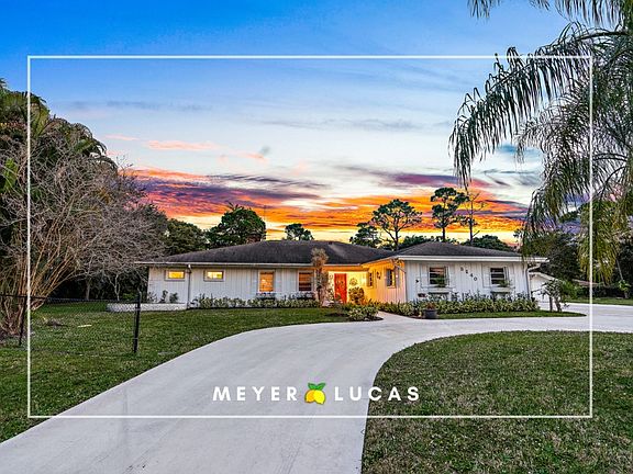 SPECTACULAR four bedroom + detached garage ranch style pool home with over 4900 total square feet in Horseshoe Acres of Palm Beach Gardens! Have you been searching for the PERFECT single-story family home with plenty of space and the potential for a mother-in-law suite? This expansive estate is the CBS home of your dreams featuring a spacious kitchen with contemporary features, a screened in pool and patio, and large bedrooms, all on an acre of land in a gated, horse-friendly community! 5240 Travelers Way will impress from the moment you pull into the driveway - Notice the peaceful location on a quiet cul de sac and the massive front lawn perfect for your children to play sports or your dog to play fetch. {click more}