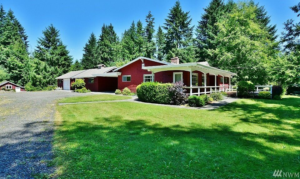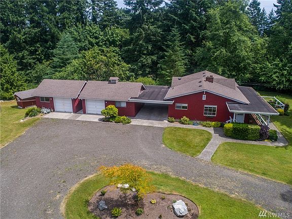 Seattle, PSNS, & greater Peninsula commuters dream. Easy access to St Rt 3 N or S. Sitting on a shy 5 acre this 1929 updated 5 bedroom,2.5 bath home (3 bed septic) with hardwood beneath carpet, fireplace, covered wrap around veranda awaits you. Convenient carport & 2, 1 car garages heated, 1/w with shop area, 1 w additional living space. Great outbuilding use for storage or your vision. Enjoy the movable playhouse, fruit trees, organic gardening potential & zoning, Urban Low 5-9 units per acre.