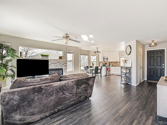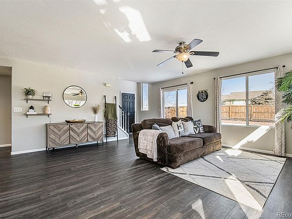 Beautiful and centrally located, this home is move-in ready and waiting for you! Most of the house has been updated, starting with the gorgeous flooring that guides you into the open-concept living area, where multiple large windows create a space that feels bright and spacious, yet cozy. The open kitchen provides ample cabinet and counter space for preparing meals, and granite counters and stainless appliances provide a touch of luxury. Upstairs, the primary suite invites you to rest and recharge, with vaulted ceilings and ample natural light, a large walk-in closet with custom built-ins, and a large soaking tub to wash your cares away! Along with two additional bedrooms, there is a loft space perfect for a play room, office, or additional sitting area! Enjoy time outside in your big backyard, which is perfect for entertaining! Backing to a farm and open space, there is a huge stamped concrete patio and plenty of yard space to play in! An added bonus, the unfinished basement provides the opportunity to create additional living space, a home gym, guest suite, or anything you can imagine! Centrally located, you are within walking distance of Cherry Park with ball fields, playground, and walking trails, and a mere 5 minutes to the local recreation center, as well as multiple shopping and dining areas nearby. You are also very close to several highways, and only about 15 minutes from the airport!