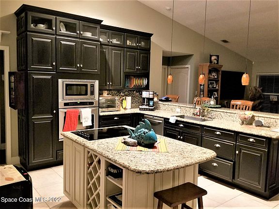 Simply Gorgeous. from the stone walkway to the custom baths, this home has it all. Spacious Chef's kitchen featuring solid wood cabinetry, granite counters, professional series stainless appliances. Vaulted ceilings in the formal living, dining & family rooms. Master Suite, open the French doors & listen to the sound of the waterfall. Tropical backyard oasis highlights a covered lanai overlooking the saltwater pool w/waterfall & tropical landscaping. Screened patio offers large entertaining areas. Extras: security sys, sprinkler sys, floored attic, outdoor shower, prof grade wood-laminate flooring, utility shed. Convenient to I-95 for easy access to Orlando, local beaches & Port Canaveral. roof, water heater, refrigerator - 1 year old. Please submit offers by 23rd 4pm