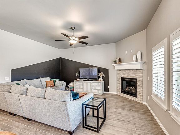 Welcome to 5241 Lannister Lane! This beautiful home is located in the gated community of The Woods at Highgarden. This stylish modern farmhouse home is a show stopper as soon as you pull into the drive. Upon entering the home, you will be greeted by wood like tile in all common areas, a perfect mud bench with lots of space for storage, as well as a floor plan that allows for lots of entertaining. The living room and kitchen are open to each other. There is a gas fireplace in the living room as well as plantation shutters. The kitchen has a large island along with an ample amount of countertop space. The gas range is perfect for the cook in the home. And the oversized pantry allows for plenty of storage. The master bedroom features an en-suite with a walk-in shower and soaker tub, plus his and her vanities. The secondary bedrooms are on their own hall and are separated by a hall bath. Once outside, you will find a nice sized patio complete with a fireplace, perfect for cool evenings outside. The neighborhood is a dream with a pool, playground and nice fishing pond. And it's all located in Edmond schools!! Don't miss out on this one!!!