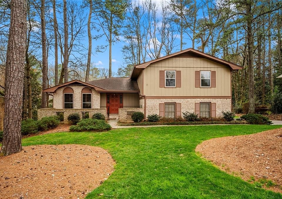 Large traditional split level with finished daylight basement. Beautiful lot in Vanderlyn Elem district. Park like backyard with deck and stamped concrete patio. Lots of great living space with a large entry hall, great living room, and fireside den that looks onto the deck. Big kitchen with lots of cabinet and counter space, granite counters and SS appliances. Spacious formal dining room, too. Large master bedroom with big master bath that includes double vanities, a garden tub, and separate shower, plus walk in closet. 3 additional bedrooms upstairs. There is also a great mudroom/laundry room between the den and the two-car garage. Great location just a short walk to Dunwoody Village. A solid house ready for your personal touches.