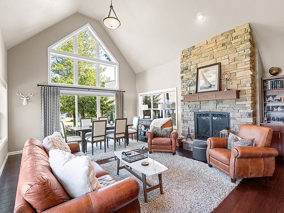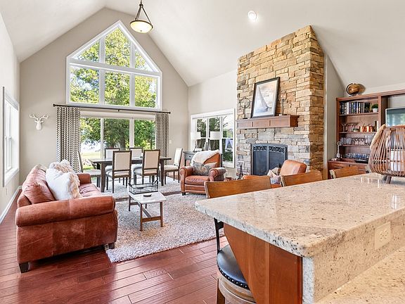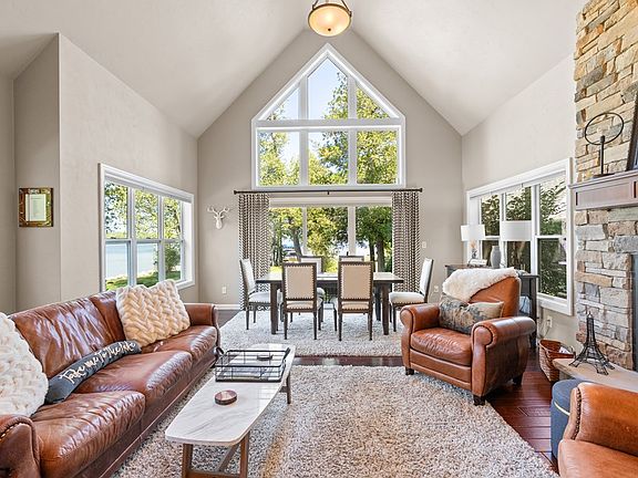 A rare offering on the south shore...Experience the allure of Clark Lake with this charming, 2010 built home, boasting 175' of pristine sand beach frontage with stunning sunsets. Nestled in a serene cove, this home features a large great room with vaulted ceilings, stone fireplace, custom kitchen with large island, a waterside dining area, a lovely patio, and all showcasing breathtaking water views. With three spacious bedrooms and an oversized backyard, this fully furnished gem offers ample space for relaxation and entertainment. Enjoy shallow, warm waters and endless sandy shores right outside your door! New outdoor sauna, a finished boathouse, and a dock complete this gorgeous property and all just steps from Whitefish Dunes State Park.