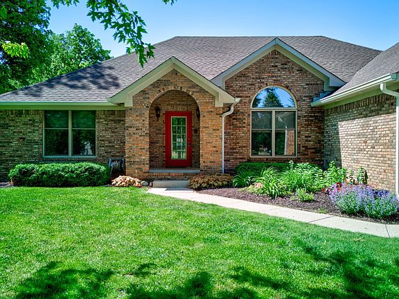 Step into this meticulously maintained brick ranch situated on a quiet cul-de-sac in New Palestine's Countryside neighborhood. The large living room features a fireplace, vaulted ceiling, and new hardwood floors which were installed in 2023. All of the bedrooms have tray ceilings as well as closet organizers. The home also features a large kitchen with a dining area and an office that looks out over the front yard. This split-floor plan home has gotten many updates throughout the years. Most recently fresh paint throughout, a new roof in 2022, and a water heater in 2023. The sprawling well-manicured yard has plenty of space for outdoor activities and includes a back deck, fire pit, and mature trees. Schedule your showing today!