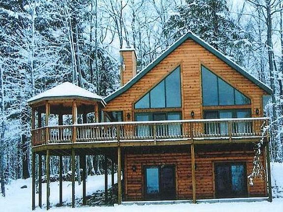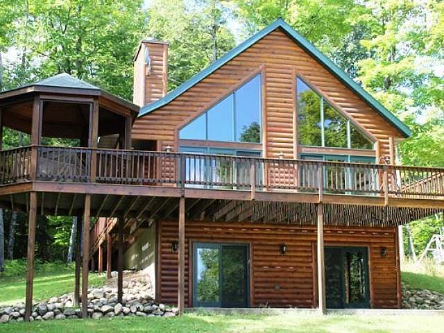 Impressive, quality built home on gin clear Crystal Lake! This gem boasts Northwood's charm both inside and out! The exterior is wrapped in cedar log siding and features a large waterfront deck and awesome octagon shaped screened in gazebo! Inside you'll find an open concept living area complete with a towering cathedral knotty pine ceiling and a solid wall of waterfront glass patio doors and trapezoid windows. There's a gorgeous stone wood burning fireplace, Hickory kitchen cabinets, a large breakfast bar and all stainless steel appliances. Two large bedrooms and two baths complete the main level. Upstairs is a large open loft sleeping area with plush carpeting, large window and incredible lake views. The walk out basement is plumbed for a 3rd bath, is framed for additional bedroom and would offer a great rec room area. Matching waterfront patio doors lead to the clean concrete patio, perfect for enjoying this supreme frontage! Truly a must see!
