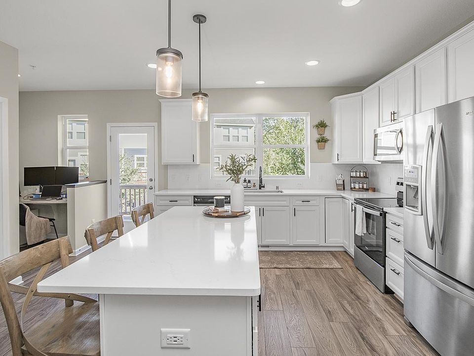 Welcome to this immaculate, open-concept townhome nestled in the highly sought-after Trillium Cove community. This expansive open floor plan is bathed in natural light and showcases expert craftsmanship throughout. The stunning kitchen is a dream, featuring stainless steel appliances, a walk-in pantry, generous quartz countertops, and a large center island—ideal for entertaining or casual dining. A convenient main-level half bath adds to the functionality. Upstairs, you'll find three spacious bedrooms, including a bright and inviting primary suite with a generous walk-in closet and a private en-suite bath complete with double sinks and a walk-in shower. An additional full bath and the convenience of third-floor laundry add practicality and ease to daily living. The home boasts a spacious double-car garage for easy parking. Outside, enjoy community amenities such as scenic walking trails, wetlands, and the charming Trillium Cove Playground. Plus, you're just blocks away from Lower Prior Lake and Sand Point Beach—ideal for a sunny day escape. This is more than a home; it’s a lifestyle!