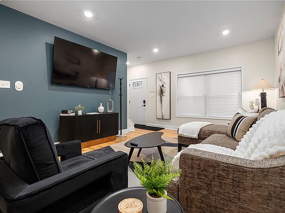 Stunning recently renovated 2 bed, 3.5 bath row house in the heart of Upper Lawrenceville! This modern gem features hardwood floors, a stylish kitchen with white shaker cabinets, quartz counters, matte black appliances, and designer lighting. The primary suite includes LED crown molding, a double vanity, and a custom tiled shower, while the second bedroom has its own ensuite full bath with tiled shower and marble vanity. Finished spray-foam insulated basement with high ceilings and full bath adds extra living space and room for guests. Enjoy a spacious backyard with a shed, newer roof, central A/C, and furnace. Just a few blocks off Butler Street—walk to shops, restaurants, and everything Lawrenceville has to offer. Minutes from downtown, universities, and hospitals. Don’t miss this one!