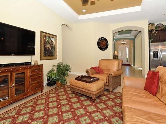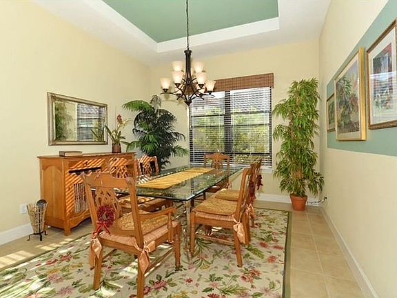 This beautiful home is better than new and shows like a model. Upgraded to a very high standard throughout. Offering two bedrooms, a den which could easily be converted into bedroom 3 (12 x 15 Ft) & 2.5 bathrooms. The kitchen has rich wood cabinetry, tiled backsplash, granite countertops & stainless steel appliances. The spacious master bedroom a sitting area & en-suite bathroom with shower and dual vanities. Features include crown molding, tray ceilings, surround sound speakers, quality light fixtures and fans. Expanded paved lanai with gas fireplace. Oversized two car tandem garage with space for a golf cart. Extensive landscaping. Quarter acre lot with lovely private rear yard. Golf membership included, a $30,000 value. Community amenities include golf, heated pools & spa, clubhouse with fitness room, full time Activity Director, tennis courts, bocce ball & canoe launch area. Gated community. Maintenance free living at its best!