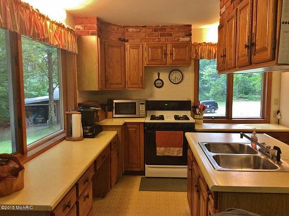 10 acres hardwoods and super cute chalet - move in ready - private - extra large pole barn & carport. 3 large bedrooms! 3rd "bedroom area" has two exit doors no egress window. Separate/main floor laundry, lots of kitchen cupboards. Drive in to see a very neat house! Surrounded by maples - patio - fire pit - Your year around family home will be your very own ''Get-away''