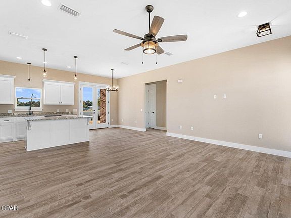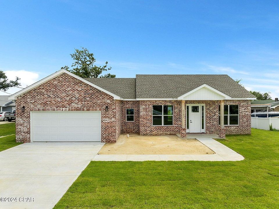 Welcome to this Stunning New Construction home located close to Tyndall Air Force Base! This spacious 3 bedroom, 2 bathroom home features a split bedroom floor plan, offering optimal privacy and comfort. As you enter, you'll be greeted by 10-foot ceilings and 8-foot doorways, and an open concept floor plan creating a spacious and inviting atmosphere throughout. You'll enjoy the upgrades this home provides such as wood look tile flooring, plush carpet in the bedrooms, a kitchen island, upgraded appliances, granite countertops and a walk in pantry. The master bedroom comes complete with its own en suite providing a private retreat. Additionally, the oversized laundry room and garage offers ample storage. As you step outside you will enjoy the oversized backyard with a water view! The builder spared no expensive by adding spray foam insulation in the exterior walls and roof. Call your agent and tour this home today!