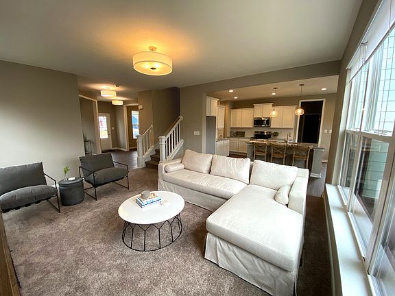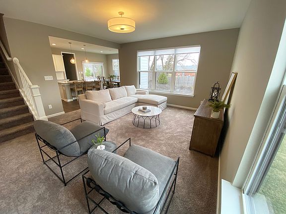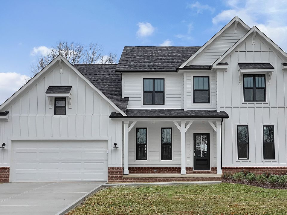 A brand new home with 4 beds and 2.5 baths and an expansive 3,760 square feet of space! This modern farmhouse in Noblesville features a full front porch and back patio that give this home a beautiful exterior profile and lots of outdoor entertainment space. Open concept, eat-in- kitchen with center island which is open directly to both the family room and formal dining room. Mud Room off of garage with built-in drop zone. The main floor also features an office or playroom and powdered bath. 4 beds & laundry room upstairs. Master suite with spa-like bathroom includes dual sinks, linen closet and a walk-in closet. This home also features a full basement which provides an additional game room and tons of storage or flex space ? whatever you'd like! 2-car attached garage is large enough for additional storage or even a tool bench! With an emphasis on tons of space while keeping a modern and cozy aesthetic, this home gives the best of both worlds!