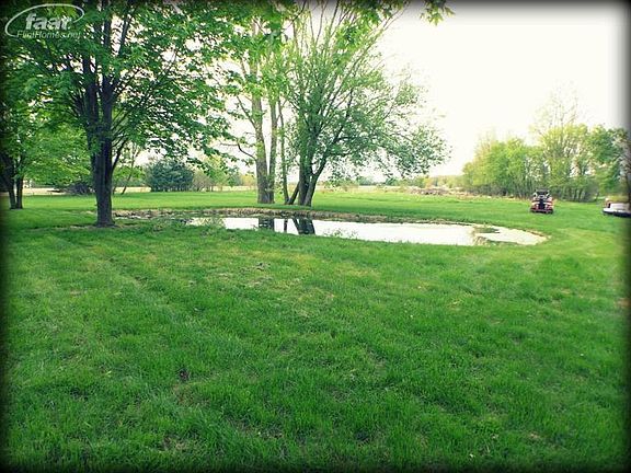 Welcome home! Over 11 acres of paradise. Enjoy your private pond. Huge circle driveway, balcony, covered deck,and pole barn. Extensive woodwork throughout. Spa- like sunken hot tub room with fully elegant plank wood- floor to ceiling. Recreation room/Man Cave area at end of house with built in bar & gorgeous views. Kitchen has island with additional sink. Gorgeous tray ceiling in dining area. Vast great room with stunning vaulted ceilings and built in booth, for quick entertaining/dining.