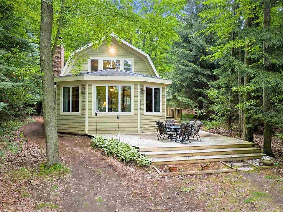 Enjoy gorgeous northern Michigan sunsets in this outstanding year-round sandy-bottom waterfront home, at a great price point!!! This beautiful 4 bedroom 2 bathroom home on Six Mile Lake resting on a 2.2 acre secluded low-maintenance lot, offers over 150 ft of shoreline and beach while comfortably accommodating family and friends. After driving through the privately wooded property, you will arrive at this idyllic 1875 sqft home paired with a 32X40ft pole barn with a14-ft high 2-car stall door with a half basketball court, also perfect for storing your up-north toys. The 70ft vinyl dock completed with a full shore station with covered lift provides the best set up for your boat, jet skis, and other fun water activities. One of 3 decks extends out to the all sports lake with depths over 30 feet. Six Mile lake, offers tremendous fishing, water sports, pontooning, paddle boarding and kayaking enjoyment. This lake cottage, nestled within a 2-lot wooded area, offers peace and privacy. Arrival at your waters edge getaway home brings a relaxing calm as soon as you enter. Larger windows all around invite the sunlit outdoors inside, offering views of the water and woods surrounding the home. The two gas fireplaces add warmth, while the wood floors with vaulted ceilings and beams add charm, character, and a cozy comfort. The kitchen features plenty of cabinets and updated appliances! Whether you enjoy swimming, kayaking the chain of lakes, boating, fishing, hiking, you'll love making memories at this fabulous home. Spend time year-round and enjoy all the recreational options Northern Michigan is known for; fantastic golf courses, snowmobile trails and several great ski resorts all within a 30-minute drive. This could be your special getaway home! Located perfectly between Traverse City, Boyne, Charlevoix, Petoskey and East Jordan this home has lightning speed Truestream fiber optic internet ready for remote work or streaming entertainment. So come check it out TODAY!