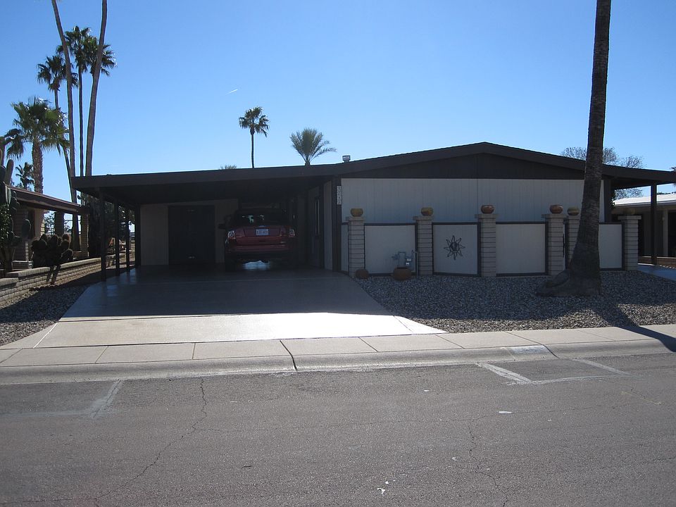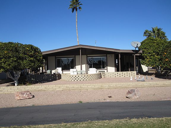 Totally updated manufactured home with unobstructed panoramic view of golf course in Apache Wells retirement community. Vaulted ceilings in LR & DR, open kitchen, 2 bedroom, 2 bath. Storage/golf cart shed, carport. Fully furnished, all appliances. Neighborhood Description Located in the active retirement golf community of Apache Wells. In addition to the pristine golf course which offers unlimited golf to members, there are many activites for non-golfers--amenities such as a woodworking shop, library, gazebo, meeting/activity rooms, fitness room, shuffleboard courts, as well as activity such as exercise classes, quilting, hiking, bicycling, etc. AW also has an activities director who organizes regular travel events to surrounding areas and theatre productions.