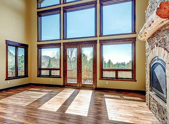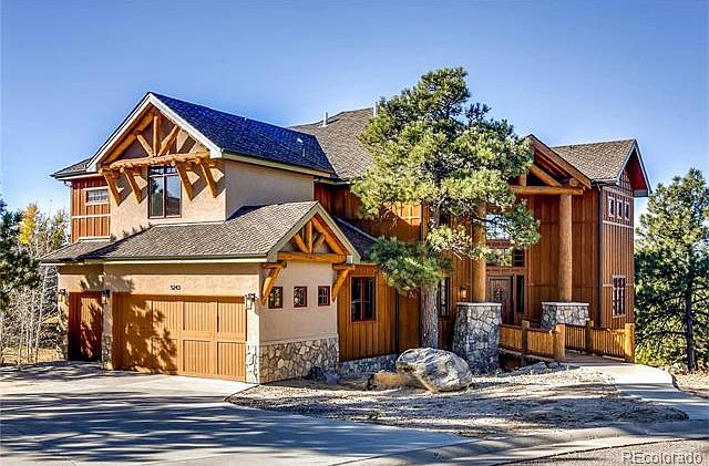Imagine living in your own mountain chalet, complete with impressive log beam work, sweeping views of the Rockies and the finest craftsmanship...right in Parker, Colorado. This is it. This fantastic 6 bedroom, 7 bath "mountain contemporary" residence has been meticulously constructed upon a fantastic home site in the sought-after Timbers at the Pinery. Backing to acres of permanently zoned open space, the views from the huge rear deck are stunning. A massive great room with 2-story volume ceiling adjoins the gourmet kitchen, formal dining room, soaring entry and spacious study. The upper level houses 4 large bedrooms including the master suite, each with it's own bath. The full, walk-out basement's construction is done and ready for your cosmetic finishes to be selected and installed! Full finished basement included with full price offer! This one has it all...Buyer to verify measurements, taxes and HOA dues.