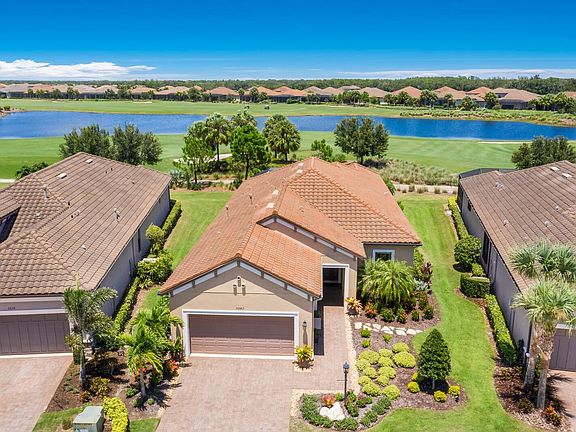 Catering to discerning expectations and high-class standards, this spectacular Farnese home is designed and improved to perfection. Overlooking peaceful pond views as well as several fairways of the Esplanade golf course, comfort and quality combine for an extraordinary lifestyle. The moment upon entering, you are welcomed by bright and inviting interiors, eye-catching architectural elements, new tile floors, an updated neutral color palette, and posh finishes gracing every space. Glass double doors in the foyer lead to an inspiring den that is perfect for an office, spill over guests, crafts or hobbies. The great room floor plan creates a flowing environment with the dining room and gourmet kitchen that all opens to the extended screened lanai for an indoor-outdoor experience. The kitchen presents a beautiful atmosphere for gathering while meals are prepared around the generous island with seating featuring a new sink and faucet, stunning granite countertops, tile backsplash, built-in stainless appliances including a gas cooktop, and white cabinetry with under cabinet lighting. The adjacent formal dining room is currently fashioned as a piano room but can be adapted to fit your preferences. Whether enjoying the evening breeze, barbecuing for guests or relaxing in the hot tub, the screened lanai allows you to fully appreciate the Florida way of life. An ensuite guest bedroom with full bath is found on the opposite side of the home to afford maximum privacy for company while the master retreat is a statement of luxury, featuring a tray ceiling, bay window, and resort-style en-suite bath with a walk-in shower and double sink vanity. The list of notable improvements defines pride of ownership, including Elfa Closet Systems throughout; new electrical throughout; surge protection; vibrant landscaping with outdoor lighting; new interior lighting and fixtures; new window treatments and blinds; new locks and front retractable screen door; updating of the tandem 3 car garage including addition of AC, insulation in the attic and door, storage and a pull-down ladder; new faucet in the laundry room sink and new kitchen disposal; new gutters and downspouts, and more. This magnificent home raises the criteria for refined living all within Esplanade, an exceptional community offering true resort-style living with impeccable amenities including the golf membership included in the HOA fees, plus culinary center, wellness center, amenity center clubhouse, two large resort-style heated pools with spas, a poolside Bahama Bar, pickleball, bocce ball, tennis, and two dog parks.