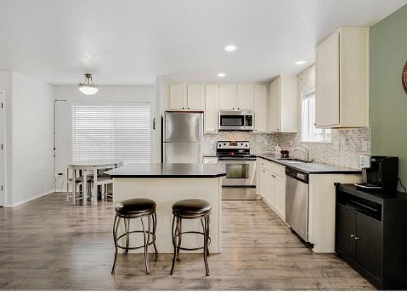 Immaculately kept, beautiful home! A perfect place to start a new chapter in a contemporary, open, welcoming home. Updated "Cook's Kitchen" with stainless steel appliances, Granite countertops, and vinyl flooring through first floor. Living room with gas fireplace. 3 nicely-sized bedrooms upstairs including Master suite w/private balcony. All baths have H2O-saving toilets! Newer flooring. Slider to lovely fenced yard w/fruit trees - fig, plum, apple, peach + berries. 2-car garage. Super convenient location - Schools, Parks, and Freeway! Tenant responsible for all utilities
