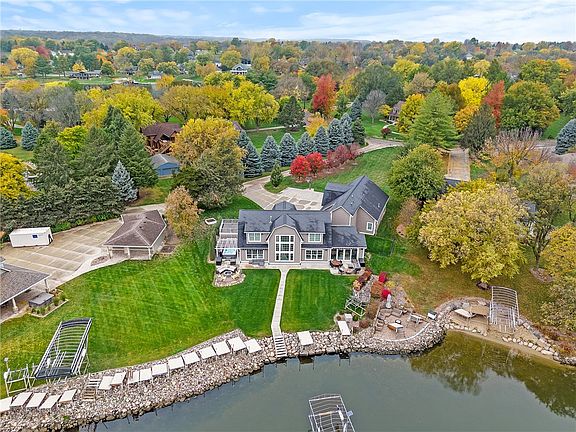 Experience a life of luxury in this highly sought-after neighborhood at Lake Panorama. This Hamptons-style home boasts enviable views of the main basin. The newly renovated, two-story home features 6+ bedrooms, 5 bathrooms, attached garage and over 5000 sq ft of finished area. Exterior amenities include a solid floor patio, stone fire pit, hot tub, spacious flat yard, and a private fenced-in pet area. The interior of the home is equally impressive, with open sight lines and stylish lighting throughout. The show-worthy kitchen features a popular island configuration, maximizing workspace and flexibility, with Quartz countertops, GE Café premium appliances, and a custom coffee bar with soapstone countertops. The primary ensuite bedroom is conveniently located on the main floor, overlooking the lake and offering a custom tile shower, freestanding tub, spacious walk-in closet, and private access to the patio hot tub area. The remaining bedrooms and bathrooms are equally spacious and tranquil. A 4+ car garage, with an additional 5th bay boat storage, is especially convenient. The garage also features an additional bedroom/office on the main floor, as well as an upper level that houses a bedroom, theater room, kitchenette, and bathroom – ideal for lodging guests or keeping loved ones near the primary residence. With its spectacular views and extensive list of amenities, this waterfront home is the perfect choice for you. The right house at the right time – it's waiting for you!