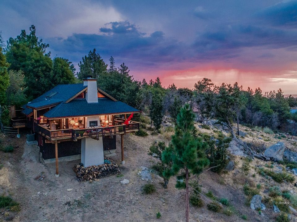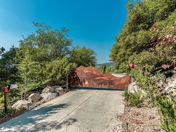 Designed by architect David Lilieholm and embellished by a top interior designer, this exceptionally furnished custom home offers luxe rustic-modern ambiance and breathtaking views that encompass snow-capped mountains, stunning sunsets and, on clear days, valleys that stretch as far as Pasadena. Sequestered behind a custom gate, park on a level driveway or 2 car garage. The grounds extend over multiple levels and display large wood decks, fireplace, stone patios, custom fountains, landscaping with blooming flowers for all seasons. Enjoy a main 2-bedroom, 2-bath home and a 1-bedroom, 1-bath, 2-story guest house, offering a combined total of approx. 2,600 sq ft. Vaulted wood ceilings soar high over the home's fireplace-warmed living room, a dining room with circular picture window, and an open kitchen with island, stone countertops, a walk-in pantry, custom cabinetry, and high-end Viking appliances including a massive range with pot filler. Multiple Sub Zero refrigerators, wine cooler.