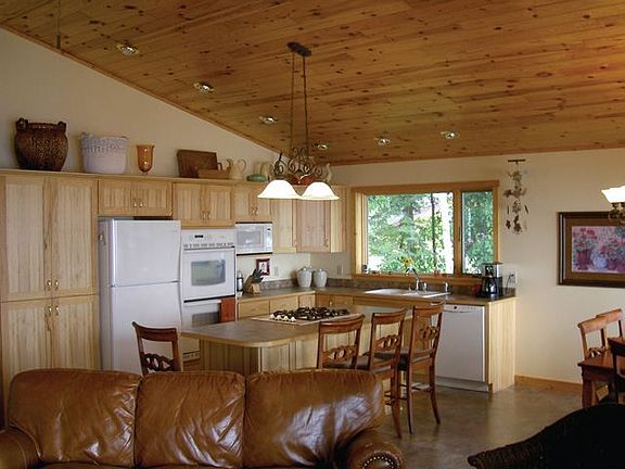 Boundary Waters without the drive. Newer home 30' from waters edge on Grindstone Lake! Asphalt driveways, hickory cabinets, pine ceilings, spectacular views and sandy beach! Private guest quarters with large heated garage. Lake report avail.