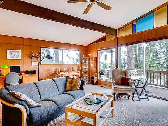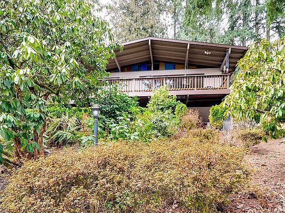 Truly delightful, impeccably maintained MCM with view, set privately on a quiet lane in the heart of west Scappoose. 4, possible 5 BR's.Coffee shops, restaurants, groceries, library are all an easy walk or bike ride. Large dividable .71 lot (buyer do due diligence) on a lovely treed setting. Spacious finished craft/storage room on lower level.Private deck in rear; front deck has captivating view of valley and mts. Move in ready.