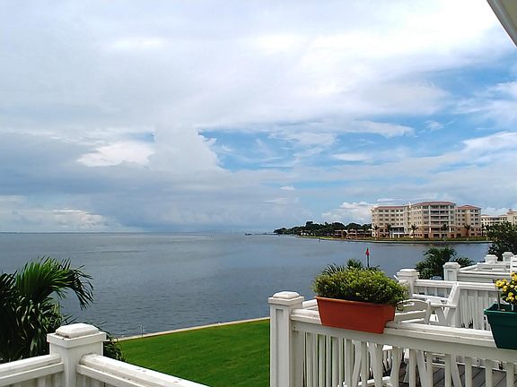 SPECTACULAR OPEN WATERFRONT TOWN HOME LOCATED ON BEAUTIFUL TAMPA BAY with views of Skyway Bridge. Extra large brick patio overlooking the bay; huge great room with laminate wood floors; and, granite kitchen. There is a hook up for stacked washer & dryer. Half bath located on the main floor as well as a large dinette area. The upstairs boasts a recently remodeled full bath and 2 large bedrooms. The main bedroom has a private balcony overlooking the bay. This is a terrific place to live. Dogs and cats ok with permission.