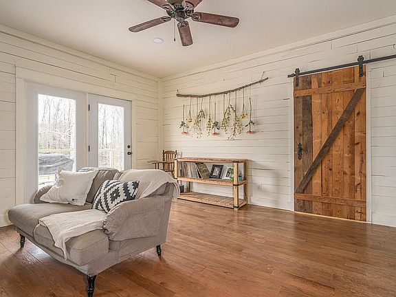 Beautiful farmhouse in country setting. All the charm and character of an old farmhouse! 5 bedrooms or 4 bedrooms with an office and 3 full bathrooms. This home has gorgeous oak hardwood floors throughout. The laundry/mudroom has built in cabinets and lockers perfect for storage. The open concept is wonderful for entertaining. Reclaimed wood shiplap walls gives the main living area and master bath a unique vintage look. Do you love sonic ice? This house has an under-counter pearl ice machine so you can have sonic ice any time you want! Slate finish appliances, granite counter tops, and tiled showers are a few more features. High efficiency, spray foam insulation keeps utility bills low. Beautiful setting 2 minutes to the Dyer exit. 4 cleared acres with trees. City water, paved road.