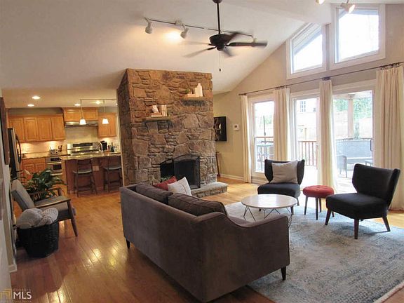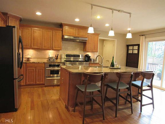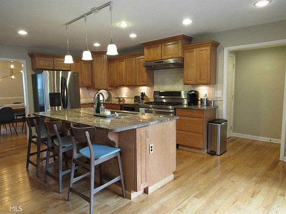 Sought after E Cobb schools (Walton, Dickerson, Mt. Bethel). Renovated Ranch with 4 BR-3.5BA+ finished terrace level. 3rd BR/office on main. Spacious Kitchen offers granite countertops, butler's pantry and SS appliances. Xtra hardwood floors throughout main level. Fireside FR and separate formal DR. Barn doors featured in main level guest BR and down to professionally finished terrace level with media room, bar, BR, full Bath, laundry room and sep HVAC. New landscaping with extra plant material, river rock and firepit. Master BR offers separate deck and newly updated bath. Huge deck/pergola off Kitchen area. Well maintained. Tree fort and trampoline remain in the private, fenced yard. Double pane windows. S/T community.
