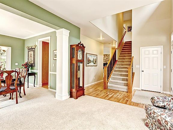 An impeccably maintained & upgraded home in Spring Creek at Harris Ranch! A charming front porch is complemented by beautiful landscape, providing curb appeal, and inviting guests into the ~2660sf residence. Formal living and dining spaces are illuminated through large windows. The spacious great room is warmed by a floor-to-ceiling gas fireplace surrounded by fantastic built-ins. A wall of windows spans from the great room into the dining and kitchen area, framing the outdoor setting. The gourmet kitchen has been beautifully upgraded with granite counter tops and features built-in oven + microwave, travertine tile backsplash, and large center island with built-in gas cook top. Hardwood floors blend the kitchen and dining areas seamlessly. The upper-level serves as a sleeping level featuring a generously-sized master suite with luxurious bath, plus 2 additional bedrooms, a guest bath, and a bonus room with an open doorway (which can serve as a 4th bedroom). The backyard features substantial landscape upgrades, providing a serene setting for outdoor enjoyment and entertaining. Close access to the Greenbelt, Boise River, and community amenities including pool & clubhouse. 3 car garage.