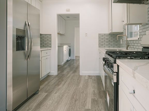This light-filled home has natural light in nearly every room, central air and heat, and recessed lighting throughout. The large, updated kitchen features new stainless steel appliances, modern cabinetry, and in-unit laundry for added convenience.
