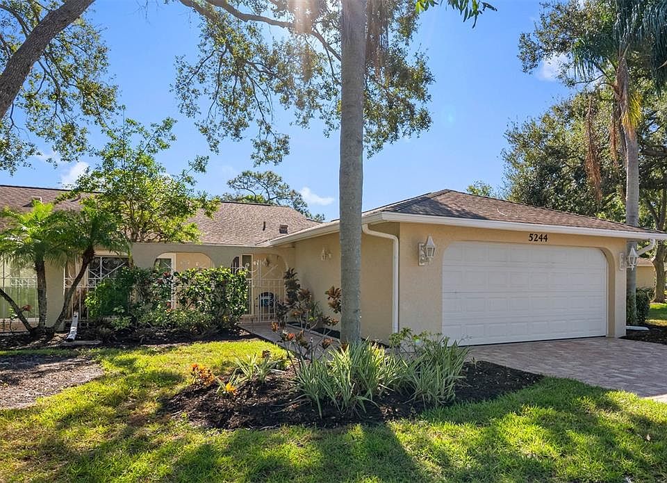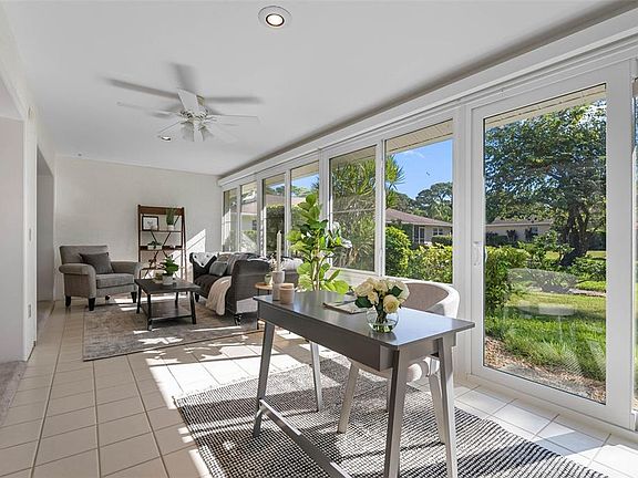 Experience the Best of Florida Living! Welcome to this beautifully maintained 2-bedroom, 2-bath villa perfectly situated on a desirable corner lot in the highly sought-after Meadows community. This maintenance-free home greets you with a charming pavered courtyard—ideal for morning coffee or evening relaxation in your own private oasis. Inside, enjoy a bright, open floor plan where the great room flows effortlessly into the glass-enclosed Florida room, surrounded by lush tropical landscaping. Whether you’re entertaining guests or simply unwinding, this light-filled retreat offers the perfect blend of comfort and style. The spacious kitchen boasts all new stainless steelrefrigerator, range, and microwave installed 2024, generous counter space, and a cozy dinette area. A versatile front room can serve as a dining area, home office, or sitting room. The primary suite features dual walk-in closets and an en-suite bath with dual sinks and a walk-in shower, while the guest bedroom and second bath provide a private space for visitors. Additional Upgrades: AC 2023, Hot Water Heater 2022, new water valves throughout, new toilet guest bathroom, garbage disposal 2020. Enjoy resort-style amenities including golf, tennis, walking trails, and community pools—all set within the tranquil beauty of The Meadows. The Meadows Country Club, a private members club, offers an active lifestyle in a lush, vibrant setting. Conveniently located just minutes from downtown Sarasota, University Town Center Mall, and I-75, this villa places shopping, dining, and Sarasota’s top attractions right at your fingertips. Combining comfort, convenience, and timeless Florida charm, this home is the perfect choice for relaxed, low-maintenance living. Now is the perfect time to make it yours!