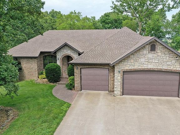This custom-built, all brick & stone, 4 Bedroom, 3 Bath home plus 3-car attached & 2-car detached garages is located just minutes East of Springfield. The home is tucked away in the trees for maximum privacy on 21 acres M/L South of Hwy 60. Enter through the stone arch entry & step into the foyer noticing the wood flooring & custom stair railing. The large open living area has tray ceiling accents & gas fireplace with windows on each side. The dining area & kitchen continue the open floor plan allowing plenty of space for entertaining. There are large windows in the dining room, built-in hutch with display space & easy access to the partially-covered deck. The large kitchen features granite counter tops, tile backsplash, bar seating & a walk-in pantry. The master suite has custom ceiling details, dual sinks, tile-surround soaking tub & large walk-in shower. Another bedroom, full bath & laundry are on the main floor as well. The laundry room has lots of cabinets & counter tops. The walk-out basement features 2 more bedrooms, full bath with dual sinks & a huge family/rec room which utilizes stone & wood architectural details. There is even a wet bar with built-ins--perfect for entertaining, plus the pellet stove will take off the chill in the cooler months. A small office & John Deere room complete the basement which opens to the covered patio. Extras: zoned HVAC, 3 HP well pump, 2 water heaters, new roof 2019. Want more land? This home is also listed separately with 31.61 acres that includes two farm outbuildings plus a pond--perfect for horses and/or cattle. This close-in country setting is just waiting for you to call it home!