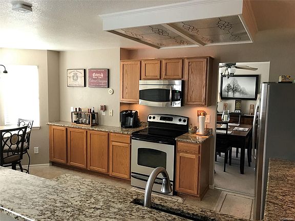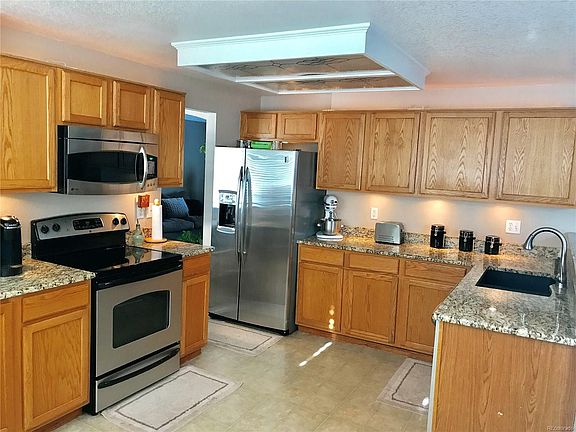 Park View Meadows home located in the Cherry Creek School District. Excellent family floorplan featuring 5 bedrooms and a finished basement. Vaulted entry to Formal Living Room with neutral decor. Formal Dining Room. Kitchen offers granite counter tops, black corian sink, oak cabinetry and stainless steel appliances including microwave. Main Floor Family Room with gas log fireplace with tile surround and pre-wired surround sound. Perfect for large family with 4 Bedrooms upstairs with a Master Suite with 5 Piece Bathroom and soaking tub. Offering a central air conditioning cooling system and ceiling fans. Wood Patio Deck with built in bench. Fenced yard with sprinklers front and back. Two Car Garage.