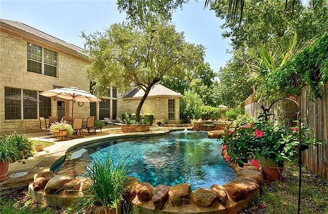 Gorgeous 4 bed, 3.5 bath home with sparkling pool/spa, nestled on a tree shaded lot in highly sought after Circle C! Featuring a bright, open floor plan ideal for entertaining with 2-living, 2-dining, main level master suite & an expansive gameroom up. Gourmet kitchen open to living with stainless steel appliances, granite countertops, large center island & breakfast bar. Designer paint, recessed lighting, hardwood & tile flooring with walls of windows offering abundance of natural light. Bowie High!