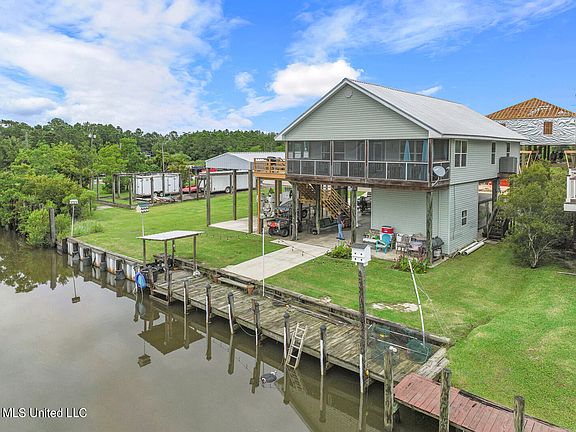 This house boasts truly panoramic views of Bayou Caddy and the Mississippi Sound. Unreal! A perfect perch to bird watch, decompress from a busy workday, and take in the stunning vistas of coastal life and nature all around. Great fishing ! the deep water canal is under 5 minutes to Bayou Caddy or the Mississippi Sound or Louisiana Waters. Downstairs there is plenty of room to socialize, park several cars, and store boats. Definitely a fisherman's set up. There is a shed set up with a new ice maker (that can be purchased separately) and bathroom, with break away walls. A bulkhead runs across the canal. New steps lead up to the front porch. A great room with soaring cypress ceilings and walls welcomes you. Open floor plan with stunning views and eat in kitchen. Tile floors in the great room and laminate floors in the bedroom. Huge wash room, and washer and dryer will remain. 3 bedrooms with cypress walls and walk in closets. Roof replaced four years ago. New AC. This house is a 15 minute golf cart ride to Old Town Bay Saint Louis, the municipal harbor, and all of the shops and restaurants, coffee houses and entertainment Old Town has to offer.