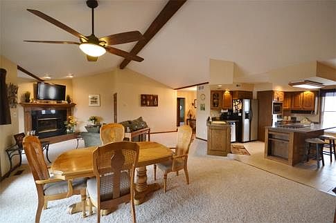 Fabulous Walk-out Ranch in beautiful Wildwood Lake Estates. Very Open Floor Plan with no walls separating the Kitchen, Dining Room and Living Room. Spectacular lake views from so many vantage points. Spectacular Hearth room with double side Fireplace. Large Master Suite with big bath and walk-in closet. Two large bedrooms and full bath round out the main floor. Large Family Room with wet bar, Refrigerator and set up for electric stove. Bedroom, Full Bath and lots of storage. Covered Patio, Sand Beach, Swim Dock on small lake, and boat dock on 77 acre lake. Two car side entry garage and two car drive under garage. Just picture yourself sitting on the large deck and enjoying the beautiful sunsets. Many memories to be made here.