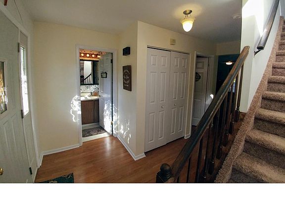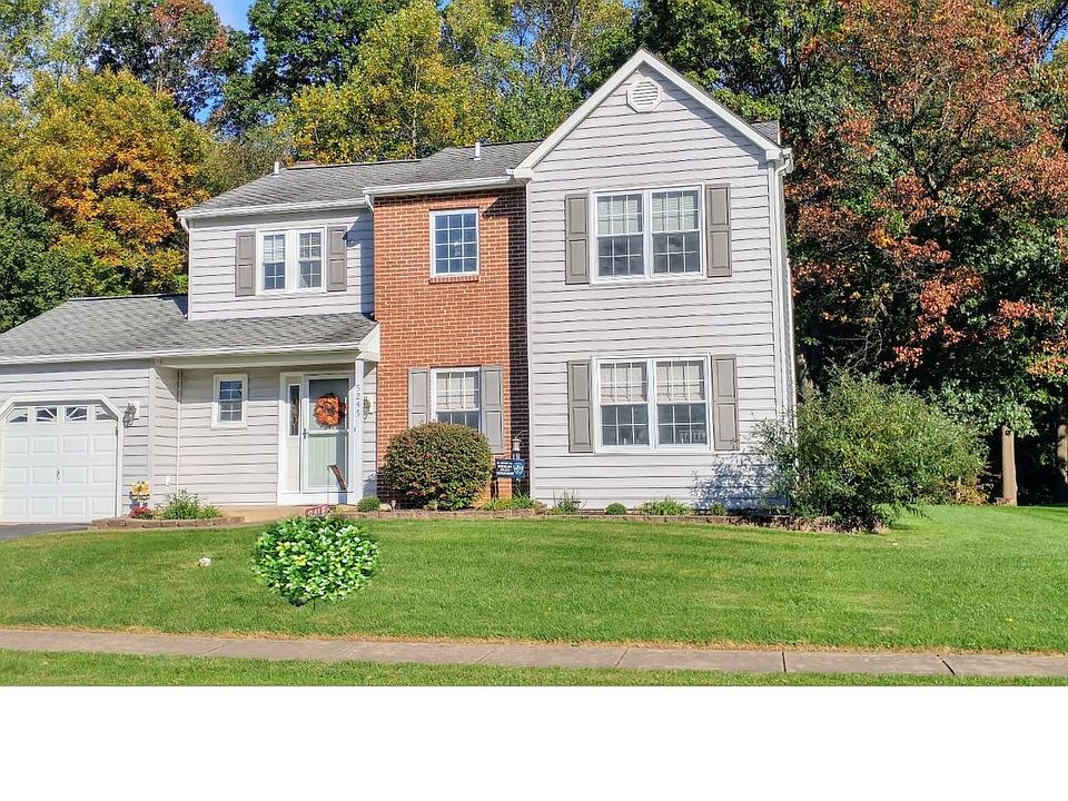 Welcome to the best location in Mill Creek Farms! You will find peace & tranquility in this beautiful, sun-filled 4 bedroom, 2.5 bath Brick and Vinyl 2-story Colonial backing to Treed Open Space at the very back of the development ... such seclusion! Finished Basement with Storage Space; 2-Story Entrance; Updated Eat-in Kitchen with ceramic tile floor, newer oak cabinets, GE Spacemaker Microwave, GE Self-cleaning Oven, Kenmore Dishwasher, and Whirlpool Refrigerator with Ice & Water; Sliding glass doors open to large, level Maintenance-free Deck which connects to gated Pool; Two Storage Sheds. Family Room (adjacent to Eat-in Kitchen) with Fireplace (converted to propane, but can easily be restored to wood burning) and Bay Window; New, Neutral Carpeting in Living Room, Stairs and 2nd Floor Hallway. Super Master Bedroom with views of front & rear yards, Large Walk-in Closet with window and organizers, Master Bathroom with double sinks, and shower over bath tub. Spacious 2nd, 3rd, and 4th Bedrooms -- all with generous closet space. Garage with newer Glass-topped Insulated Garage Door; garage door opener; work bench; pull-down stairs to floored attic with electric. Siding, Roof, Windows, Heater, and Hot Water Heater have all been replaced within past 10 or so years. You will find that Pride of Ownership prevails in lovely Mill Creek Farms, a non cut-through community with sidewalks and level streets. Washer, Dryer, Two Refrigerators are included as-is. Light Fixtures, Ceiling Fans, and all Window Treatments are Included, as well as a 1-Yr Home Warranty Included. Very easy to show ... be prepared to fall in love!
