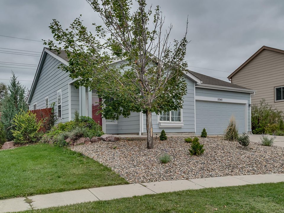 Beautiful ranch style home with 3 BR, 2 BA, 2 car garage and 1295 square feet situated on a cul-de-sac. The living room features vaulted ceilings and gas fireplace. The spacious kitchen offers abundant counter and cabinet space, stainless appliances, custom tile back splash, pantry & ceramic tile flooring. Unwind in the master bedroom with attached bath and walk-in closet. There are two spacious secondary bedrooms and full bathroom. This home offers large closets, two pantries and tons of storage. Enjoy summer evenings on the back patio. The Back Yard is fully fenced and has a Storage Shed. Conveniently located to Peterson AFB main gate, Colorado Springs Airport, Sand Creek Elementary, park, shopping & dining.