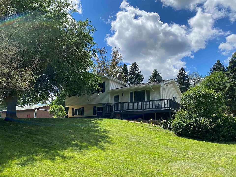 If your looking for a home with privacy this one has lots of it! This Absolutely Gorgeous 4 bedroom, 2 bath home is nestled on over 9 secluded acres and has that Up-North feel, lots of woods, nature trails for riding and walking, tons of fruit trees including apple, pear, peach, grapevines and a raspberry patch. Plus a large pole barn for the hobby farmer, or storage for all your toys. Plus there is a small pond! The interior boast a spacious kitchen with all new cabinets & countertops. Plus a large living & dining room with hardwood floors. This home also features a large master bedroom with hardwood floors, his-hers closets, and a beautiful connected bathroom with modern double vanity. The lower level boast a spacious familyroom room, 4th bedroom and 2nd full bath with new modern vanity and lighted mirror. Plus a full basement for lots of extra storage and an outside entrance for easy access. This home features a wrap around porch & large deck and is professionally landscaped. The best part, its completely updated! from Top to Bottom with newer roof, new siding, windows, furnace & central air, newer plumbing & electrical all new lighting. freshly painted, new doors & trim, refinished hardwood, new carpet and so much more.