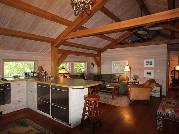 This exceptional waterfront parcel has 200 feet of beach and is located far off Lake Shore Dr. on a private shared road. The existing building has a beautiful stone foundation, post and beam construction, metal roof and no expense was spared to create this carriage house, leaving the prime building site for the future main house. Properties like this are hard to find. Large frontage with no erosion issues, privacy and in a neighborhood of high end homes. A perfect place to enjoy while you build your dream home.