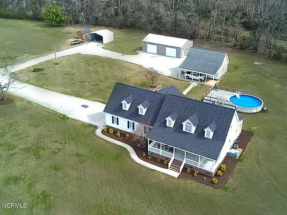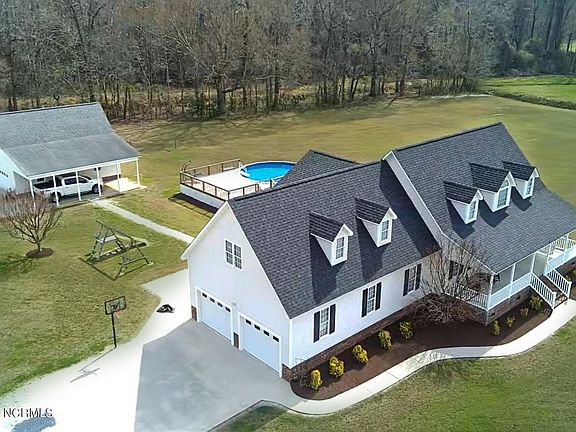 Welcome to your dream home nestled on over 6 acres of pristine land in the highly sought -after Chicod School District! This custom-built beauty boasts vinyl siding and a 2 car attached garage for convenience. Step inside to discover an enormous kitchen featuring granite countertops, stainless steel appliances, a tile backsplash and hardwood floors. Enjoy meals at the large bar, in the sunny breakfast room, or in the formal dining room. The den impresses with its 2 story ceiling and cozy fireplace, while newly installed hardwood floors add warmth throughout. The downstairs master suite has been remodeled with luxury vinyl plank flooring and features a flexible space attached. Perfect for the nursery, office, or home gym. The master bathroom is a retreat with a freestanding tub, ship lap walls, a walk in shower, dual sink vanity, and a walk in closet. Upstairs, find two additional bedrooms and a giant bonus room, and a second full bathroom. New carpet throughout the upstairs and fresh paint. Relax on the front porch overlooking your expansive property or entertain on the back porch with views of the recently installed (2023) swimming pool and deck. This property also includes two large outbuildings. The first, a 24 x 30 structure with a shelter, cement floor, wired, 220 electricity, wall AC unit, space heater, and ample storage space upstairs that could be finished for additional entertainment area. The second is a 30 x 48 wired workshop, cement floor, 2 roll up 10 x 10 doors, and a 12 ft ceiling. Roof on home was installed in 2020. With it's perfect blend of luxury, comfort, and functionality, and situated in one of the most desirable school districts in Pitt County, this home offers endless possibilities for families, hobbyists, and nature lovers alike. Bring your horses, animals, and children, or simply enjoy the serenity of your own private oasis. Don't miss out on this rare opportunity.